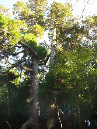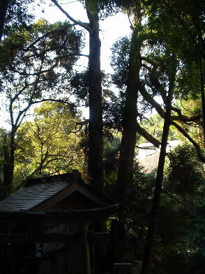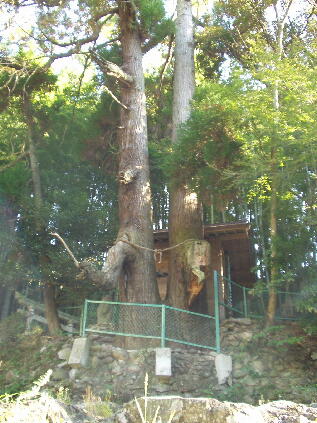 祠の裏=男龍の上岸に聳える夫婦杉