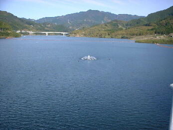 ダム堤体から眺める斑蛇口湖