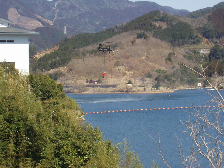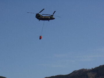 自衛隊大型ヘリによる阿蘇山火事への給水活動