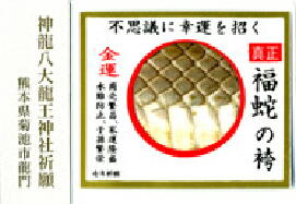 本物の蛇の脱け殻を龍のうろこに見立てて出来ている御守り「福蛇の袴」
